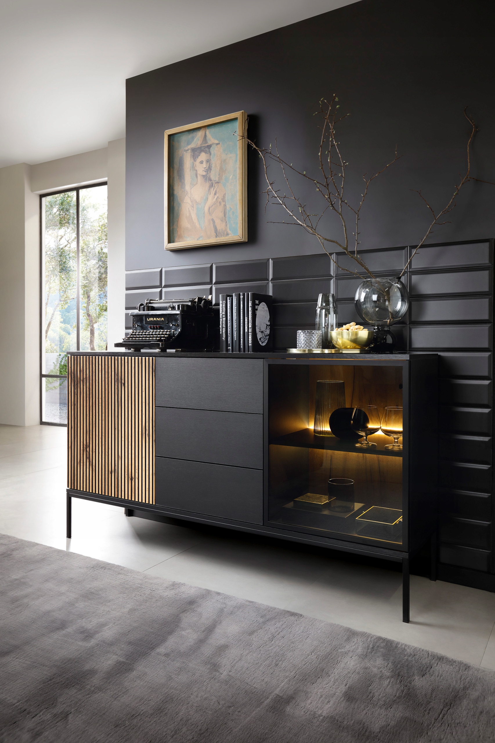 - System otwierania: „Push to open” z odbojnikami TITUS oraz krawędzią chwytną w szufladach – brak uchwytów dla czystej linii designu.