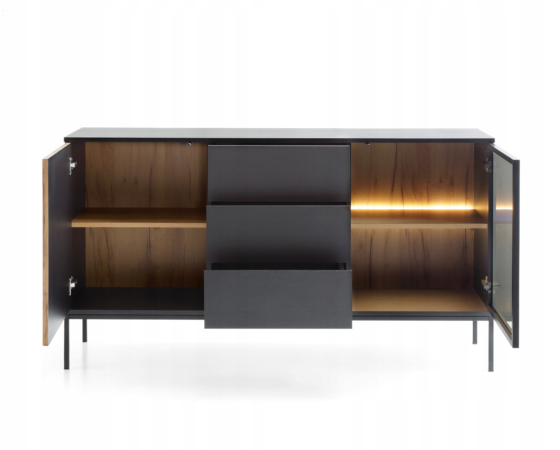 Komoda KSZ154 TiSento z oświetleniem i szufladami na nóżkach dąb wotan